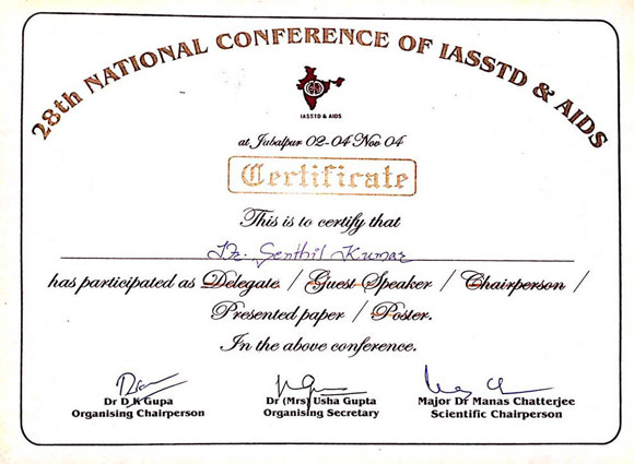Past Executive Committee Member of Indian Association of Dermatologists,Venereologists and Leprologists – Tamilnadu.